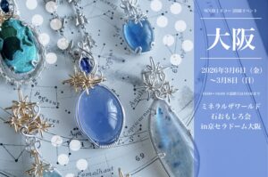 大阪市で開催される鉱物展示即売会(ミネラルショー)「ミネラルザワールド石おもしろ会in京セラドーム大阪2026」にSCOR [ スコー ]が出展します。 鉱物アクセサリーの販売と、セミオーダーの受付を行います。 [イベン … 続きを読む ミネラルザワールド石おもしろ会in京セラドーム大阪2026