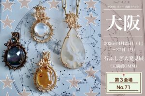 大阪市で開催される、関西最大規模の鉱物展示即売会(ミネラルショー)「石ふしぎ大発見展2026(第32回大阪ミネラルショー)」にSCOR [ スコー ]が出展します。 SCOR [ スコー ]ブースでは、鉱物ペンダントトッ … 続きを読む 石ふしぎ大発見展2026(第32回大阪ミネラルショー)